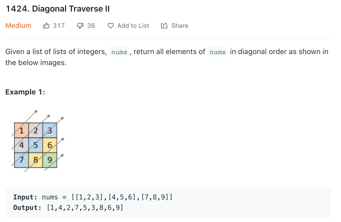 def findDiagonalOrder(self, nums: List[List[int]]) -> List[int]: