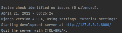 python manage.py runserver 커맨드를 통해서 서버를 실행시킬 수 있습니다.