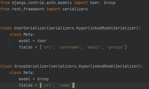 처음으로 데이터 표현(representations)에 사용될 모듈 tutorial/quickstart/serializers.py을 정의해 보겠습니다.