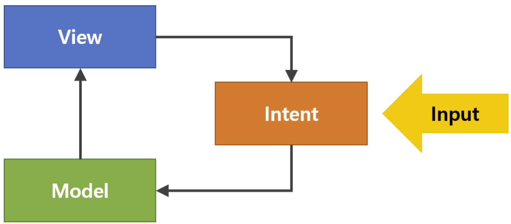 | - Intent: 입력을 받아 Model에 처리 동작(Intended action) 제공 |