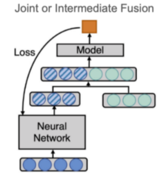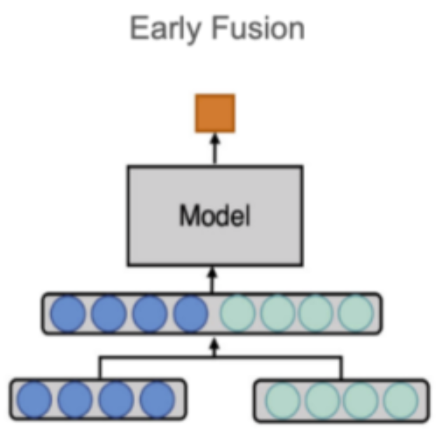 - 종류가 다른 두 가지 데이터를 하나의 데이터로 먼저 합친 이후 모델 학습 |