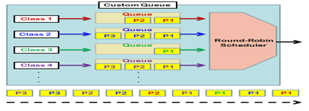 - 클래스별로 분류된 큐를 round-robin 방식으로 처리 |