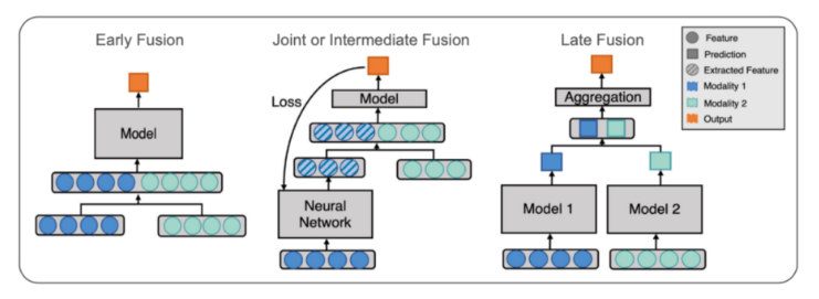| Early Fusion | - 종류가 다른 두 가지 데이터를 하나의 데이터로 먼저 합친 후 모델 학습 - 다양한 데이터 변환 기술 요구, 데이터 전처리 후 융합 |