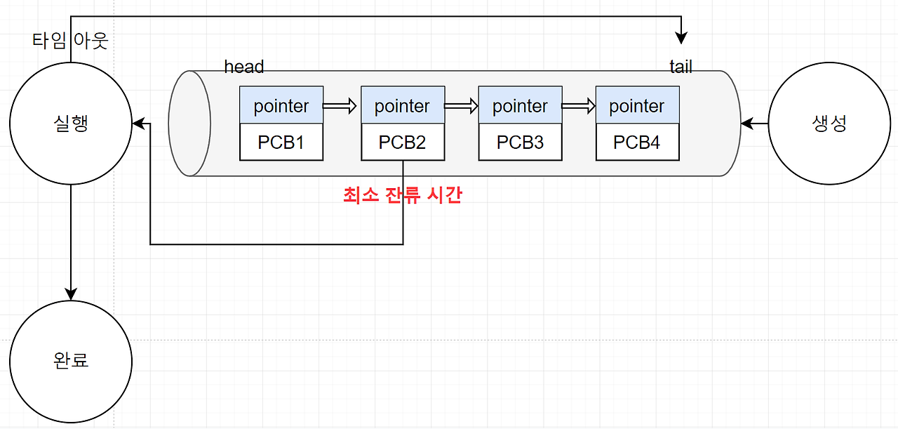 - 기본적으로 라운드 로빈 구조 사용 - 큐 순서보다 남은 작업 시간 순서 고 |