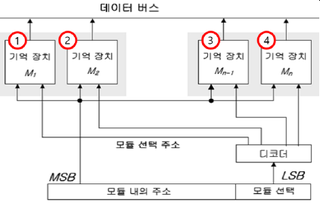 | - 주소들이 프로세스 기억장치간 버스를 통해 순차적으로 기억장치 모듈에 도착 | |