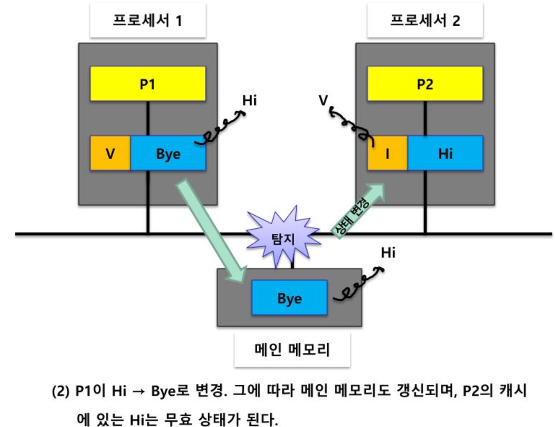 | 개념 | - 변경된 캐시 스누피 제어기가 다른 스누피 제어기에게 변경된 내용 통보 | |