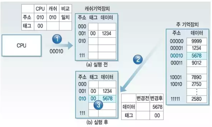 | 개념 | - 프로세서가 캐시 데이터 수정 시 주 기억장치로 갱신 | |