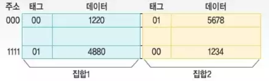 | 설명 | - 메모리 블록 그룹이 하나의 세트로 공유 - 메모리 블록은 특정 세트 내 어느 곳이나 적재 가능 - 회루 구현이 복잡하고 구현 비용 높음 |