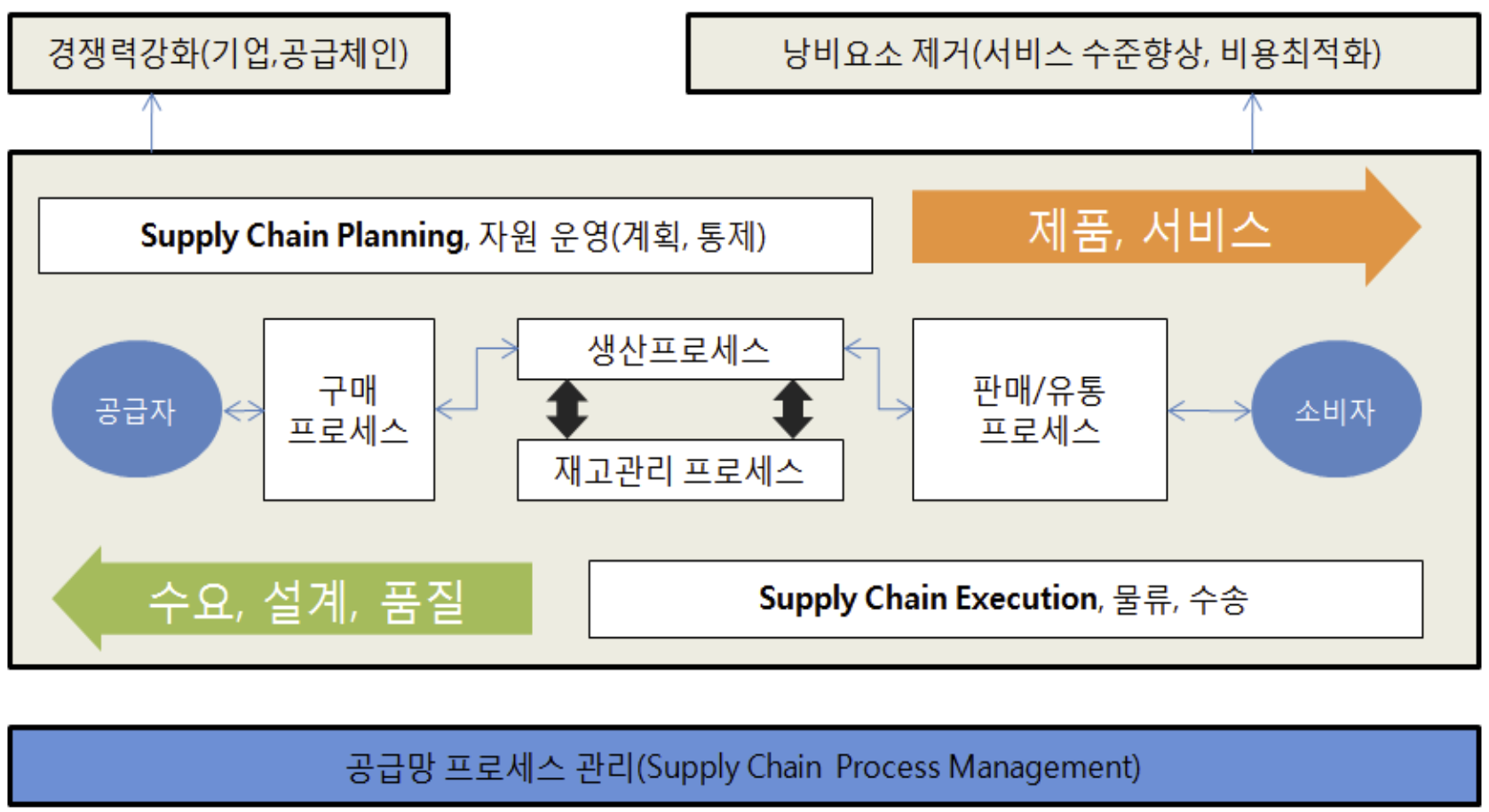 주문, 생산, 유통, 물류관리 등 실제 공급망에서의 행위 지원 | 주문관리, 생산관리, 유통관리, 물류관리 |