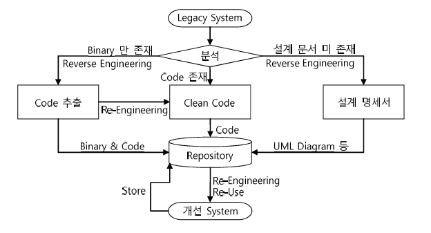 | 재공학 | 기존 시스템 평가 | - 유지보수, 성능개선 위한 분석 |