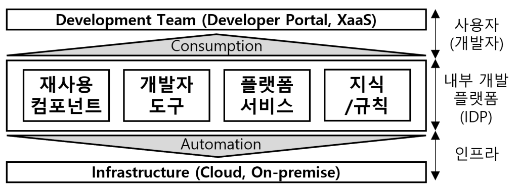 | 운영 및 개발 관점 | 개발자 포털 | - 내부 개발자 플랫폼(IDP) 제공 |