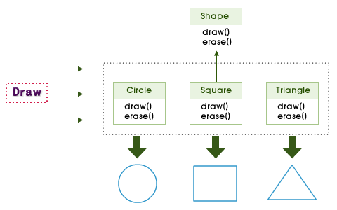- 하나의 인터페이스 draw(), erase() 함수명 사용 - 디자인패턴 prototype 이용하면 효과적 코딩 가능 |